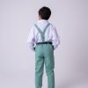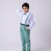 TECIDO CAMISA SOCIAL MANGA LONGA : MICROFIBRA 100%TECIDO DA CALÇA: 70% POLIESTER, 16% VISCOSE, 11% LINHO,3%ALGODÃO Conjunto composto por: Camisa Social na cor Branca, Gravata Borboleta na cor verde, Cinto na Cor preto,Suspensório e Calça na cor verde. Demais peças ou acessórios, não inclusos. BATIZADO,PAGEM,NOIVINHO